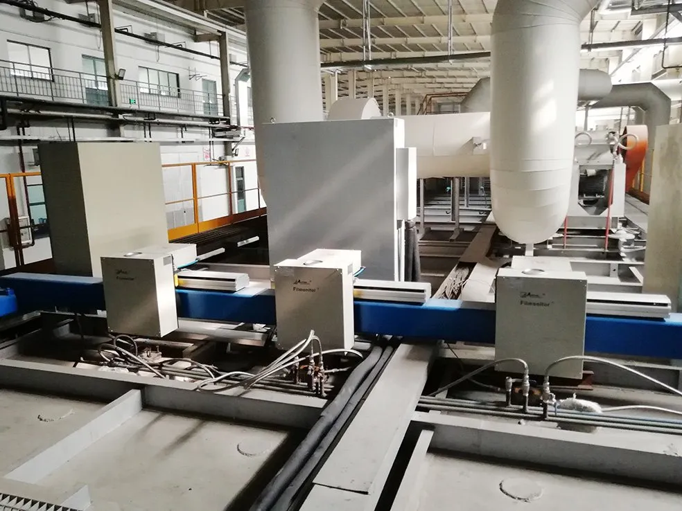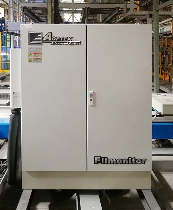 The Filmonitor6230 is used to measure the spectrum reflectance at A0 area (hot end) of CVD line, which is installed at A0 area (hot end) of float glass production line, where locates at the end of the tin bath. It can rapidly measure spectrum reflectance, and calculate parameters such as color, color difference. It is convenient for technicians to discover coating problems in advance and then to adjust coating process. Because it is installed at hot end, the installation can be done only on production line design period or production line stopped.